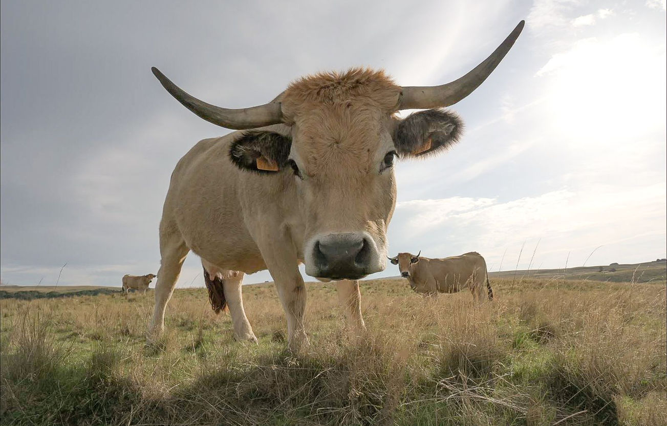 Levé du jour Les Hermaux / Plateau entre les Hermaux et Nasbinale. race bovine l'Aubrac.